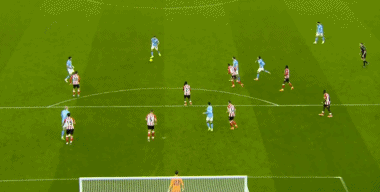 面對桑德蘭的鐵桶陣,曼城前30分鐘都沒有射正。比賽的第32分鐘,迪亞斯禁區前右腳勁射破門,1比0!
