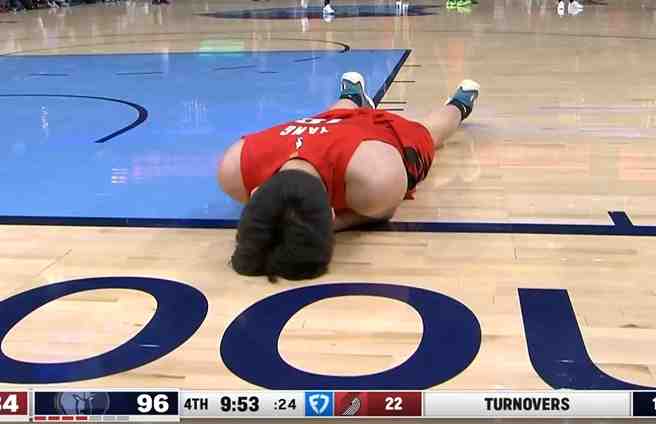 楊瀚森遭遇包夾被埃迪打到面部痛苦倒地 在地上躺了半天沒起來