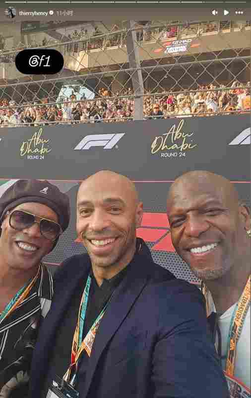 亨利社媒曬照:與小羅和美國影星泰瑞·克魯斯一同看F1